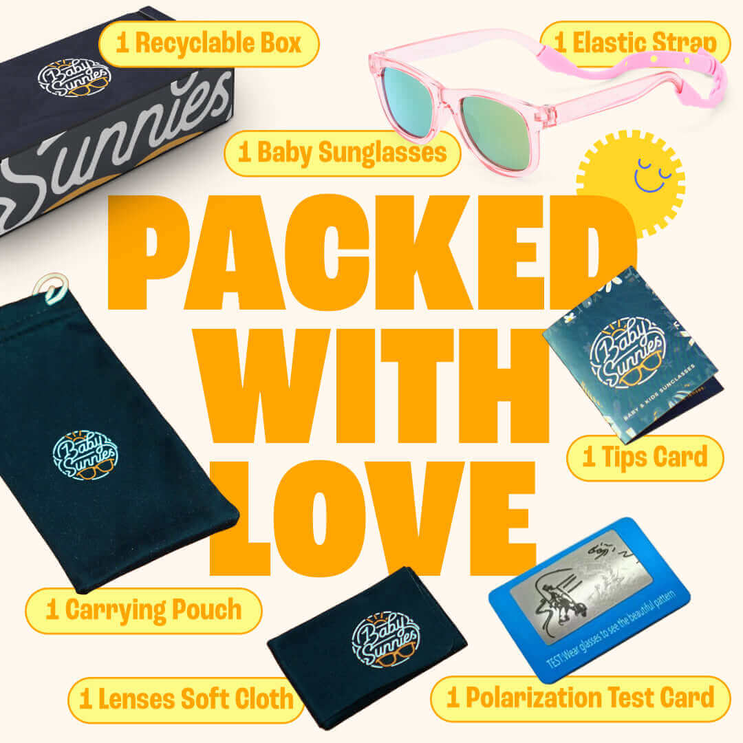 Designet til 0–24 måneder med bløde, mærkefri materialer og en fleksibel pasform - solbriller til baby med rem, der forbliver behagelige, selv under barnevogns lure og stranddage